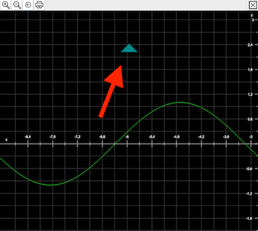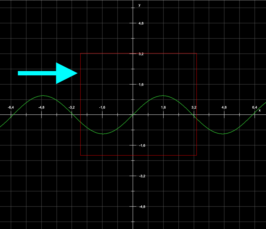 Nach dem Loslassen der Maustaste blättert dann CGRAPH wahlweise eine ganze „Seite“ (Doppeldreieck) oder eine halbe „Seite“ (einfaches Dreiecke) in die jeweilige Richtung der Spitze des Dreiecks. Mit „Seite“ ist hier die Breite bzw. Höhe des Grafikfensters gemeint. Wenn das Fenster bspw. eine Breite von 6 Einheiten zeigt, blättert der Doppelpfeil um eben diese 6 Einheiten, der einfache Pfeil nur um 3.