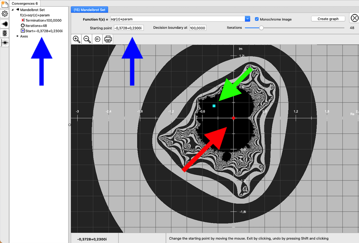 - Double-click on the red square (red arrow) in the graphic, which shows the current parameter in the complex plane.