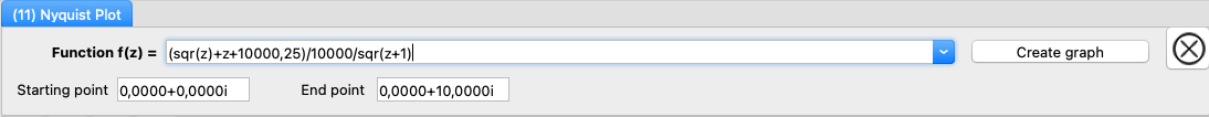 After clicking on the Create graph button, CGRAPH displays the Nyquist Plot.