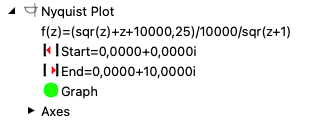 The Nyquist Plot shows the course of the system function on the imaginary axis. Its course provides information about the stability behaviour of the system.