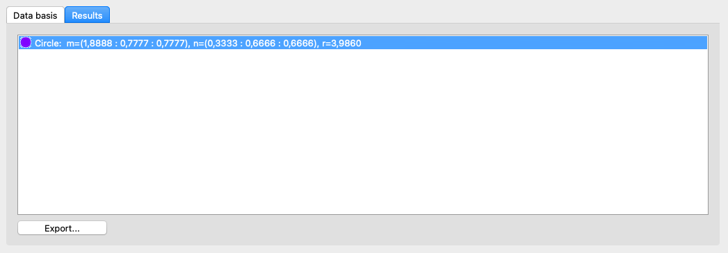 The results of the calculation can be viewed under Determine sections in the Results tab. The Export button is also available here, which can be used to save the results in a CSV file.
