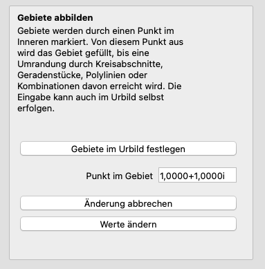 Da Gebiete aufgrund von innenliegenden Punkten festgelegt werden, setzt diese Grafik voraus, daß bereits eine Berandung abgebildet wurde und Abbildung und Urbild erzeugt wurden, wahlweise durch Kreisabschnitte, Geradenstücke oder Polylinien.