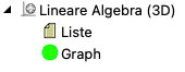 Die lineare Algebra (auch Vektoralgebra) ist ein Teilgebiet der Mathematik, das sich mit Vektorräumen beschäftigt. Ähnlich wie in anderen Teilgebieten der Mathematik, sind die strukturerhaltenden Abbildungen, welche in der linearen Algebra die linearen Abbildungen sind, von besonderem Interesse. CGRAPH erlaubt im 3D-Raum die Darstellung von Geraden, Ebenen und Kugeln und kann Schnitte berechnen.