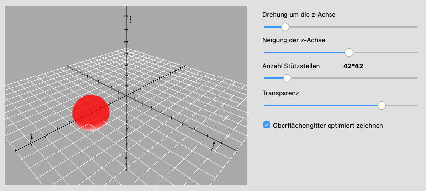 In der Grafik findet sich auch eine rote Kugel. An dieser wird dargestellt, wie sich der Regler zur Einstellung der Transparenz auf die Grafik auswirkt. Die Einstellung erlaubt keine vollständige Transparenz (was die Kugel unsichtbar machen würde).