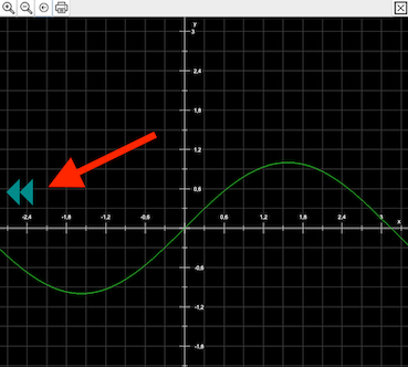 Nach dem Loslassen der Maustaste blättert dann CGRAPH wahlweise eine ganze „Seite“ (Doppeldreieck) oder eine halbe „Seite“ (einfaches Dreiecke) in die jeweilige Richtung der Spitze des Dreiecks. Mit „Seite“ ist hier die Breite bzw. Höhe des Grafikfensters gemeint. Wenn das Fenster bspw. eine Breite von 6 Einheiten zeigt, blättert der Doppelpfeil um eben diese 6 Einheiten, der einfache Pfeil nur um 3.