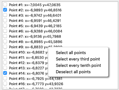 By switching the tab on the right-hand side to graphical input, the entered values can be displayed in advance in a graphics window. By right-clicking in the list on the right-hand side, the values can be easily shown or hidden.