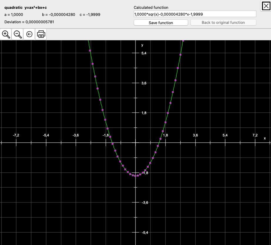 The Back to original function button restores the original parameters – the function then corresponds to the calculated interpolation again.