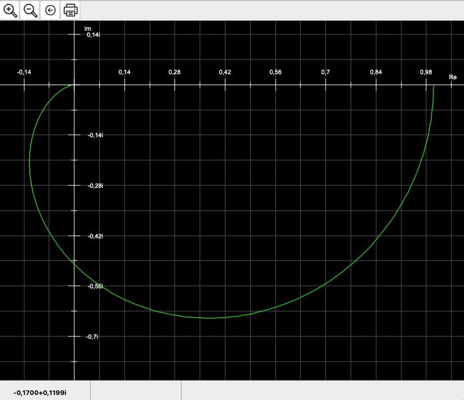 After clicking on the Create graph button, CGRAPH displays the Nyquist Plot.