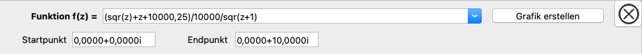 Only functions containing the variables z and param are permitted. Alternatively, the variables x and y can be used as shorthand for the real and imaginary parts. Enter the desired function in the input field for the function, or select one of the existing functions by clicking on the arrow to the right of the input field.