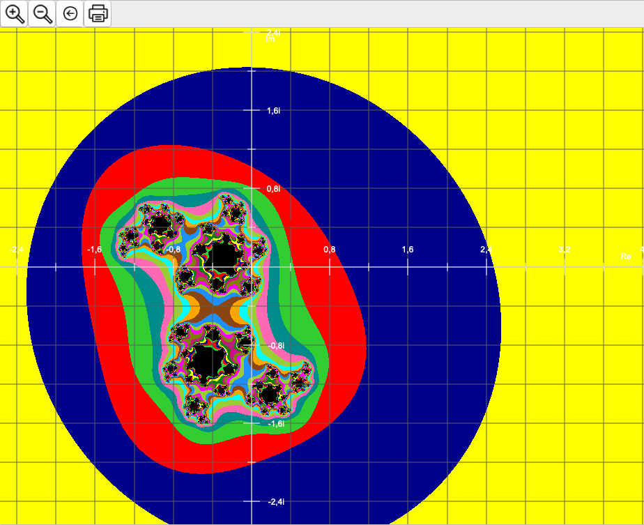 Nach jeder Iteration wird überprüft, ob das Ergebnis außerhalb der vorgegebenen Entscheidungsgrenze liegt. Wenn dies der Fall ist, wird das Ergebnis an der Stelle des Ausgangswertes z0 aufgetragen. Andernfalls wird die Berechnung bis zum ebenfalls vorgegebenen Maximalwert n durchgeführt.
