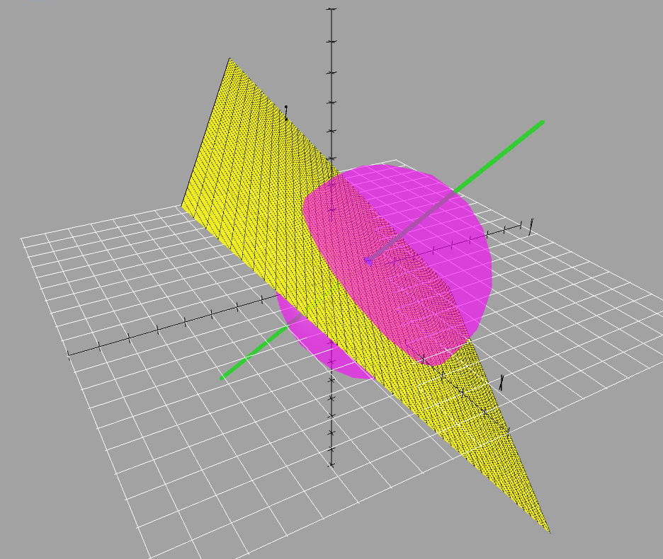 Die lineare Algebra (auch Vektoralgebra) ist ein Teilgebiet der Mathematik, das sich mit Vektorräumen beschäftigt. Ähnlich wie in anderen Teilgebieten der Mathematik, sind die strukturerhaltenden Abbildungen, welche in der linearen Algebra die linearen Abbildungen sind, von besonderem Interesse. CGRAPH erlaubt im 3D-Raum die Darstellung von Geraden, Ebenen und Kugeln und kann Schnitte berechnen.