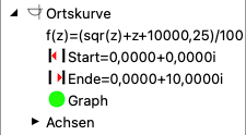 Es sind nur Funktionen zulässig, die die Variablen z und param enthalten - wahlweise können als Kurzform für den Real- und den Imaginärteil auch die Variablen x und y benutzt werden. Geben Sie im Eingabefeld für die Funktion die gewünschte Funktion ein, oder wählen Sie eine der bereits vorhandenen Funktionen durch Klick auf den Pfeil rechts vom Eingabefeld.